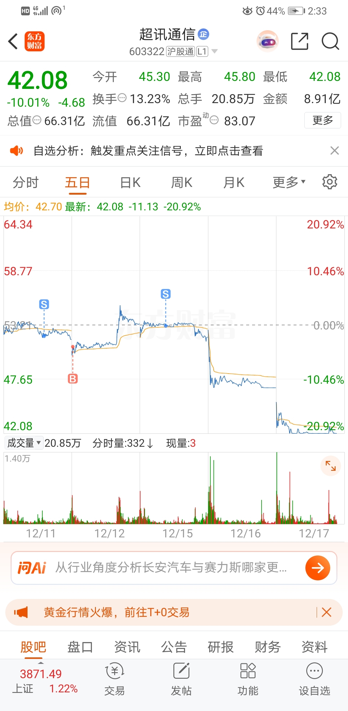 $超讯通信(SH603322)$ 真凶险