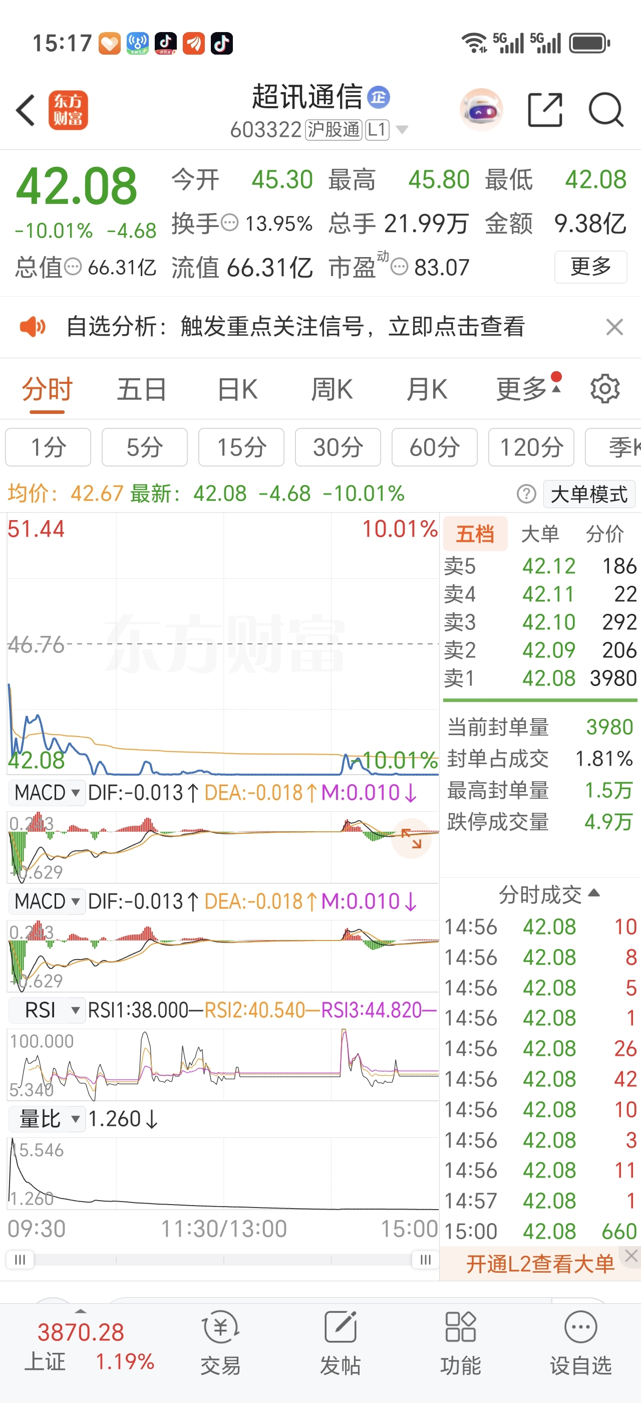 $超讯通信(SH603322)$ 大盘拉升,这股争相割肉,几次都没拉起来