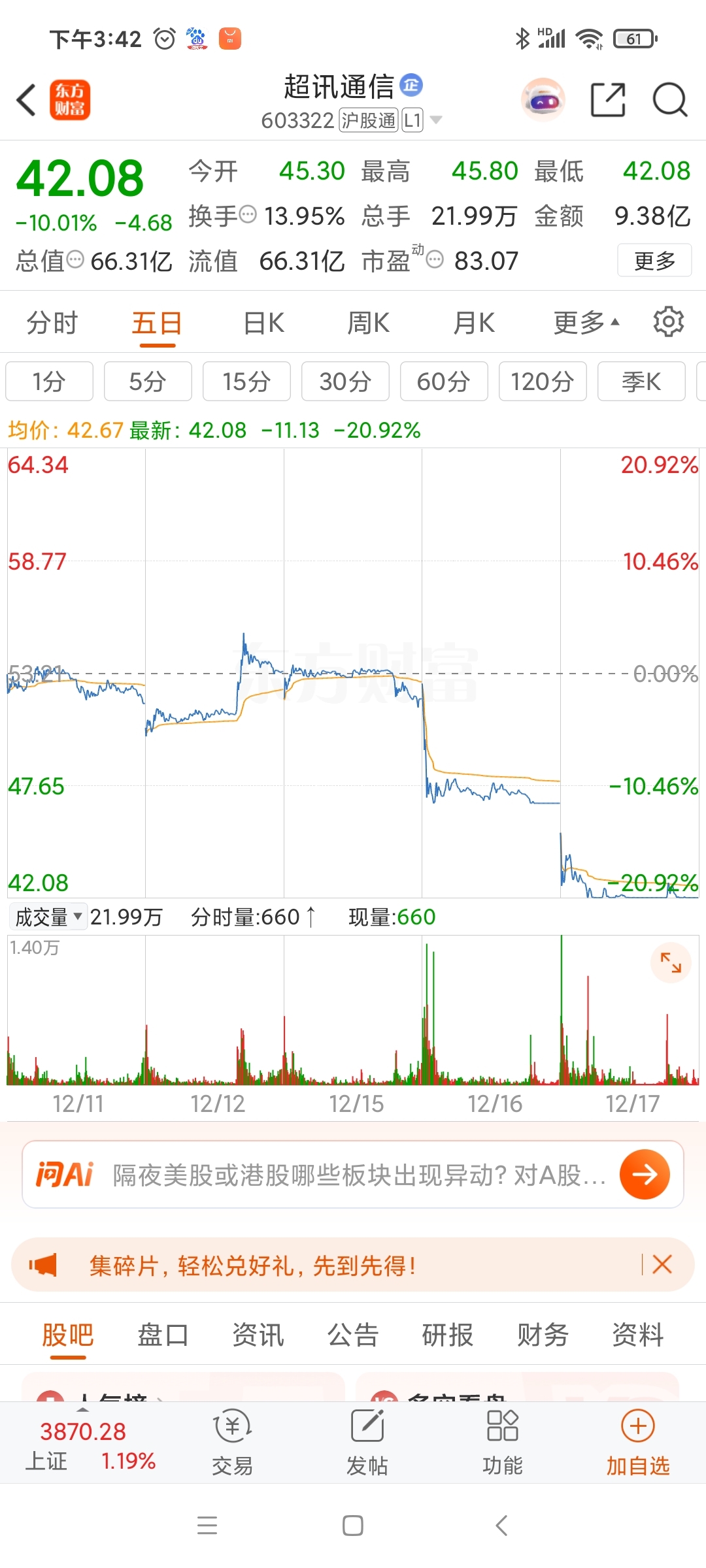 $超讯通信(SH603322)$ 给我回点血啊,又不是退市