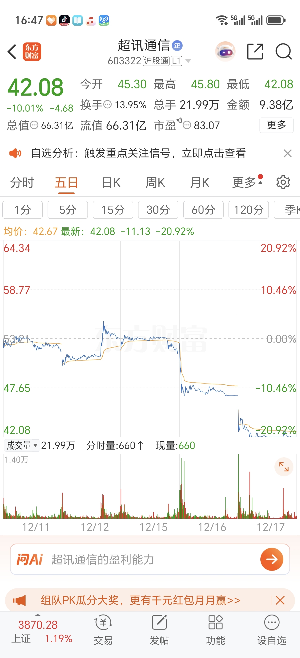 $超讯通信(SH603322)$ 我亏大了,但大盘拉升啊,我郁闷死了