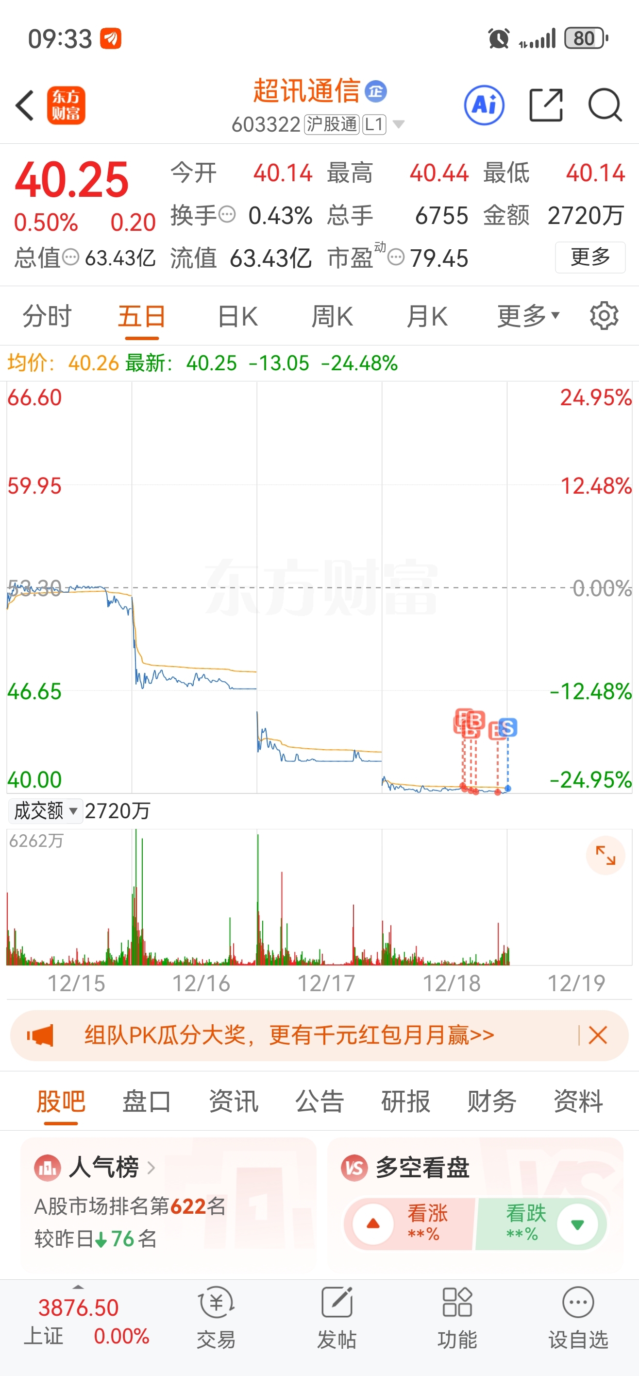 $超讯通信(SH603322)$ 得 我全仓吃到一点反弹就行了,哈哈
