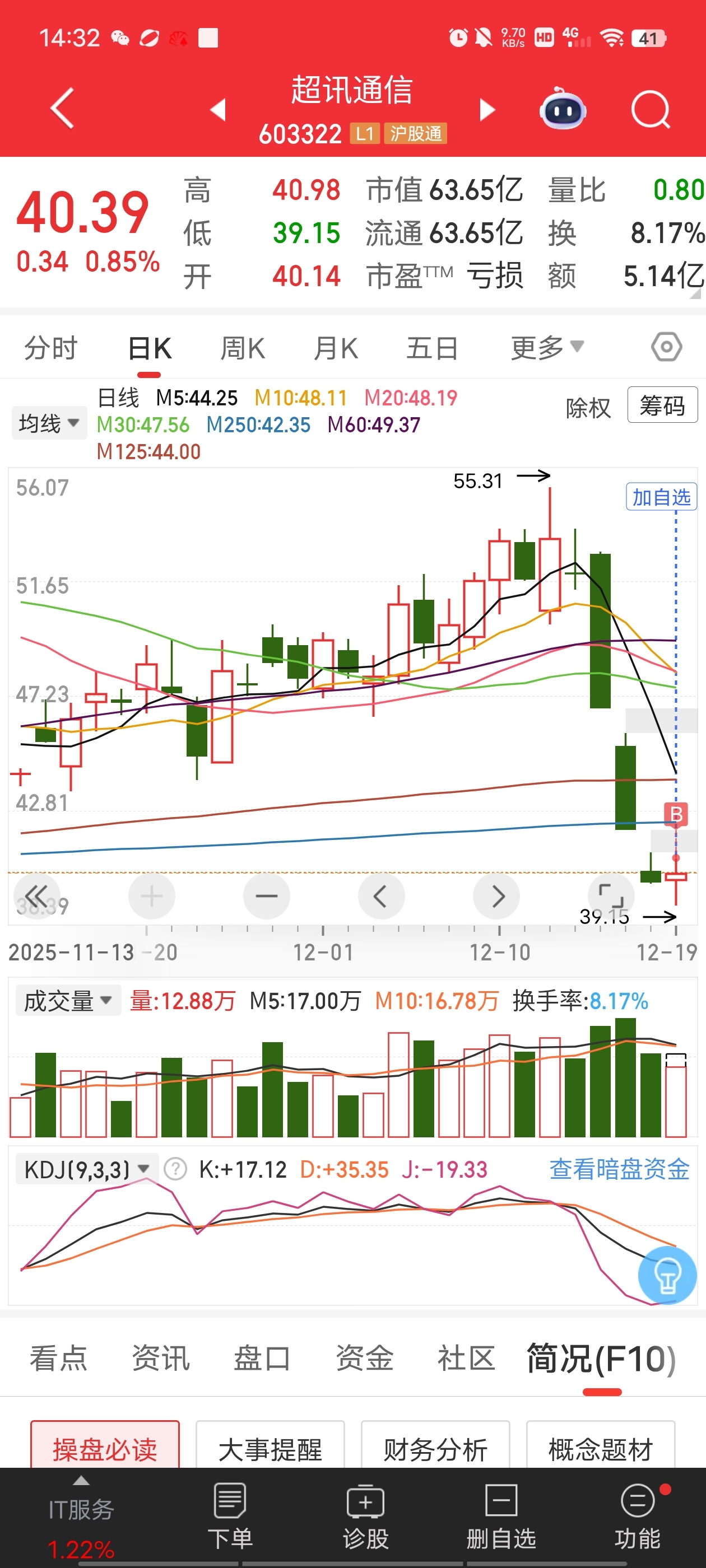 $超讯通信(SH603322)$ 博主推荐的,应该不会亏吧,两个跌停了,买了7万