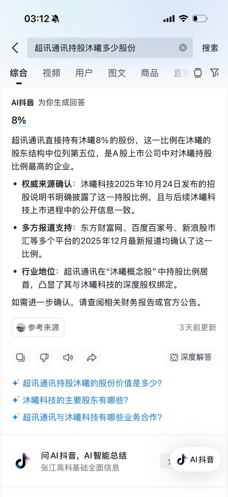 $超讯通信(SH603322)$ 为什么全平台都说持有沐曦8%股份,真还是假?