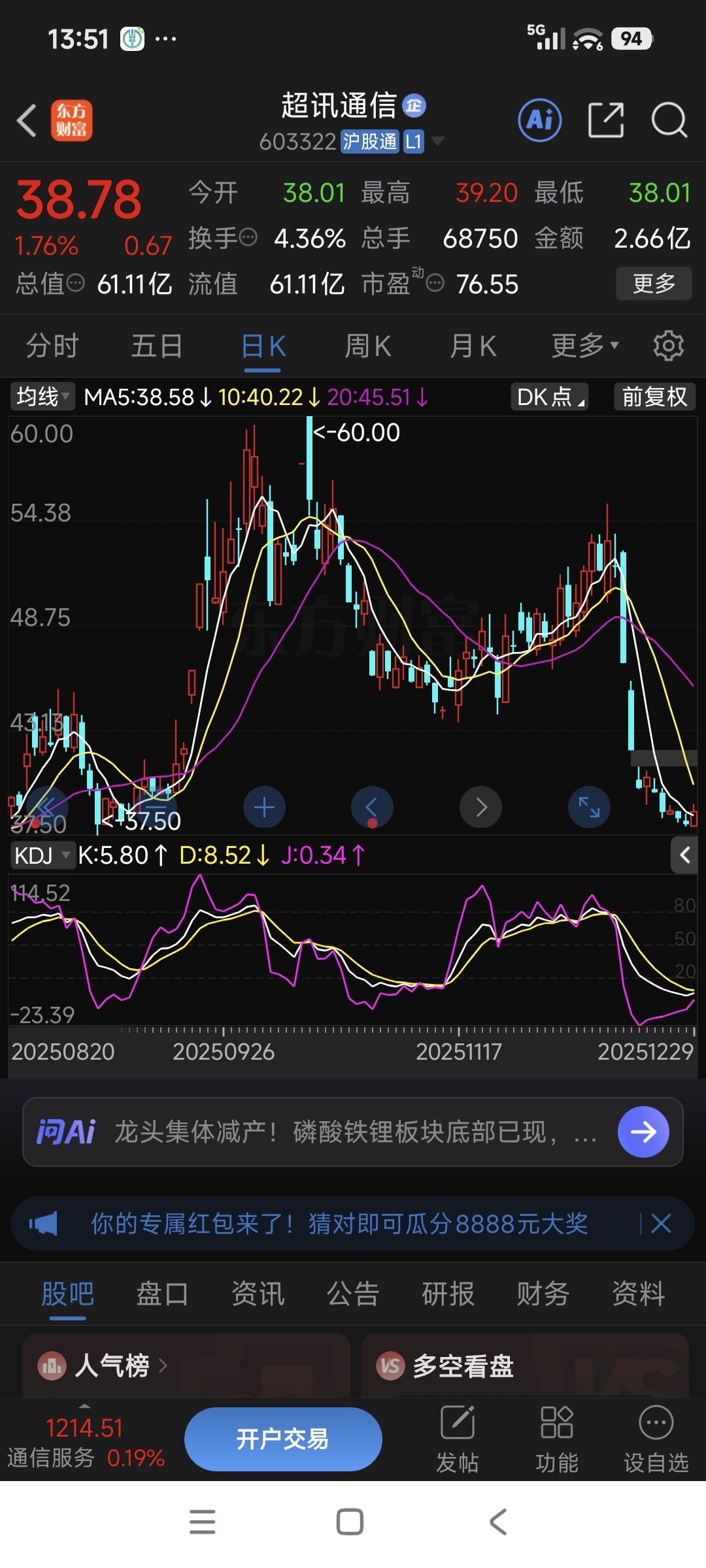 不急,星期五尾盘接到早盘卖出,看看能不能反弹到M头的颈线位43-44附近,kdj