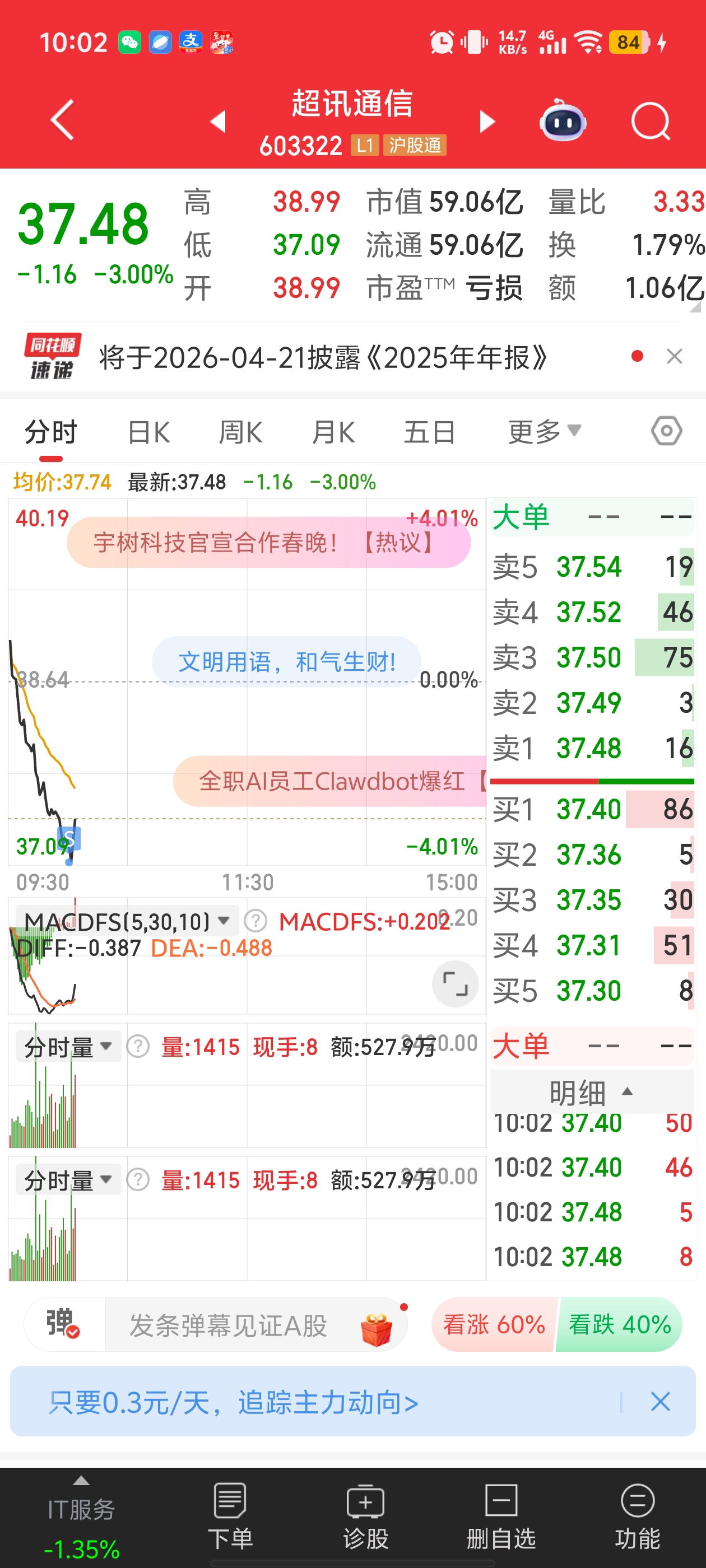 $超讯通信(SH603322)$ 谢谢我。不割不涨