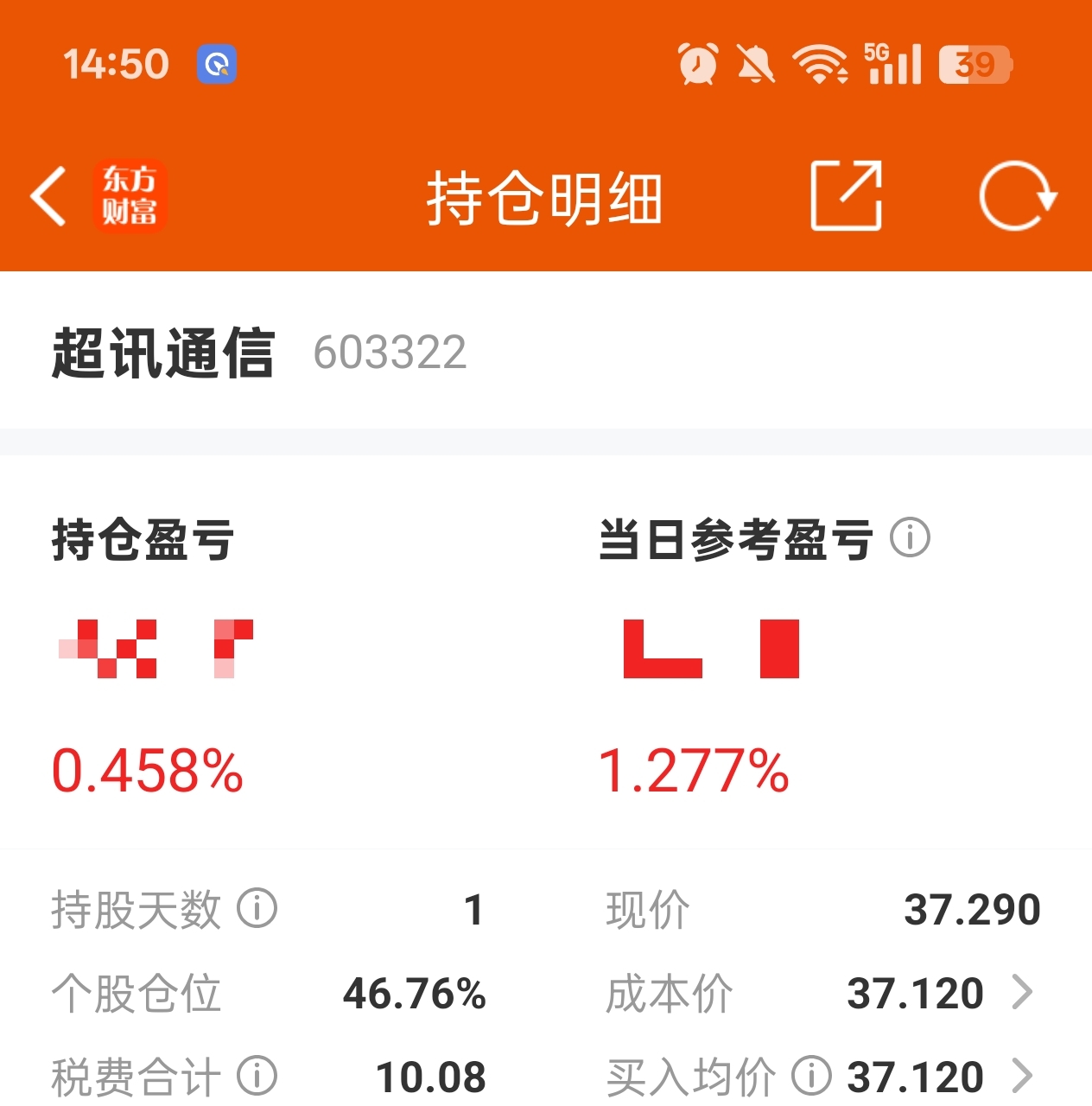 $超讯通信(SH603322)$ 今天就这一只红的,其他票全绿了…整体亏麻了
