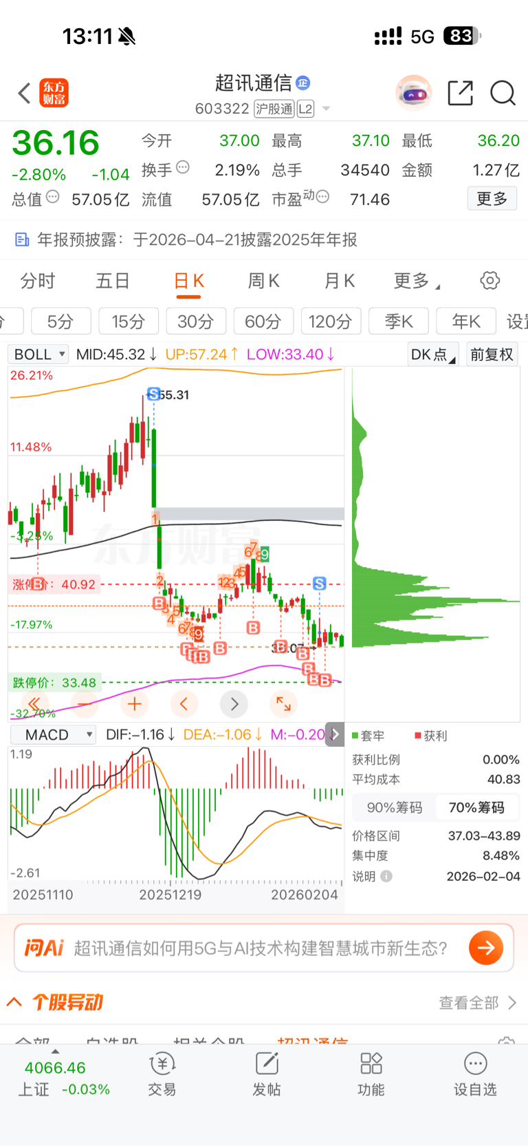$超讯通信(SH603322)$ 卖了巨力索具买了超讯通信 今年最大败笔