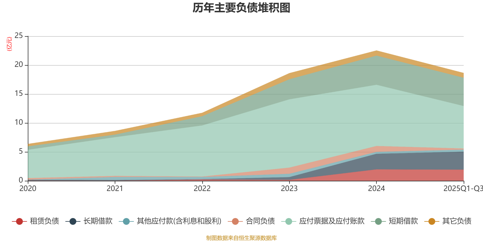 负债重大变化方面,截至2025年三季度末,公司应付票据及应付账款较上年末减少30.6%,占公司总资产比重下降6.19个百分点;合同负债较上年末减少81.02%,占公司总资产比重下降2.05个百分点;长期借款较上年末增加15.16%,占公司总资产比重上升1.89个百分点;短期借款较上年末减少3.2%,占公司总资产比重上升0.93个百分点。