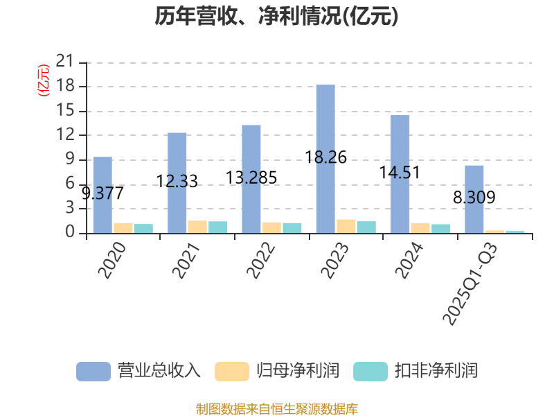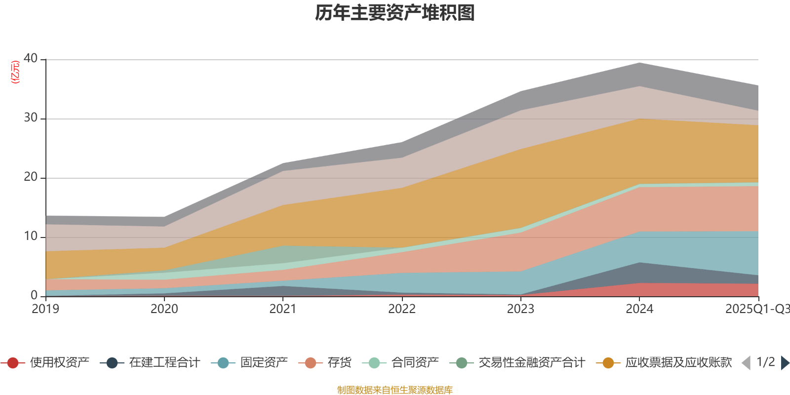 资产重大变化方面,截至2025年三季度末,公司固定资产较上年末增加42.67%,占公司总资产比重上升7.69个百分点;货币资金较上年末减少55.18%,占公司总资产比重下降7个百分点;在建工程合计较上年末减少59.34%,占公司总资产比重下降4.84个百分点;存货较上年末增加1.63%,占公司总资产比重上升2.4个百分点。