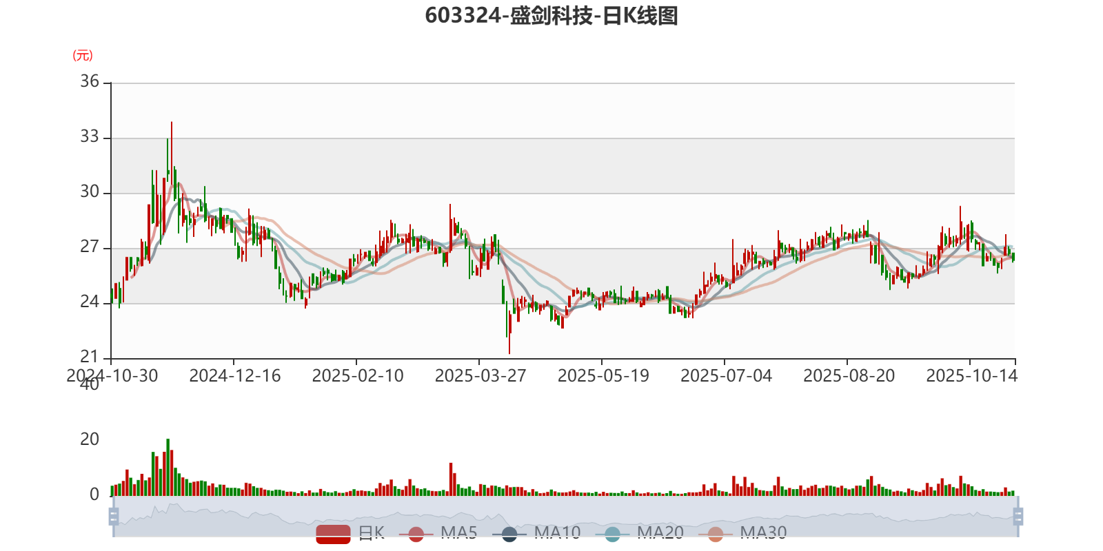 以10月29日收盘价计算,盛剑科技目前市盈率(TTM)约为65.78倍,市净率(LF)约2.31倍,市销率(TTM)约3.02倍。