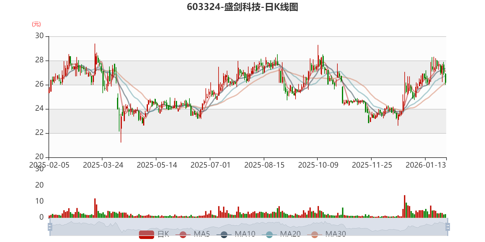 中证智能财讯盛剑科技(603324)1月29日晚间披露2025年度业绩预告,预计2025年归母净利润亏损1200万元至1800万元,上年同期盈利1.2亿元;扣非净利润亏损2500万元至3100万元,上年同期盈利1.06亿元。以最新收盘价计算,市净率(LF)约2.3倍,市销率(TTM)约3倍。