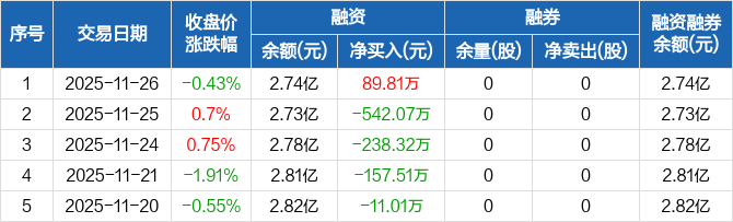 博隆技术:融资净买入89.81万元,融资余额2.74亿元(11-26)