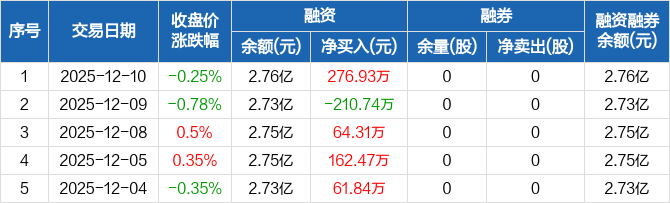 博隆技术:融资净买入276.93万元,融资余额2.76亿元(12-10)