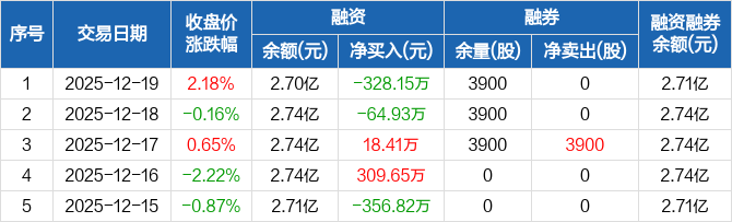 博隆技术:融资净偿还328.15万元,融资余额2.7亿元(12-19)