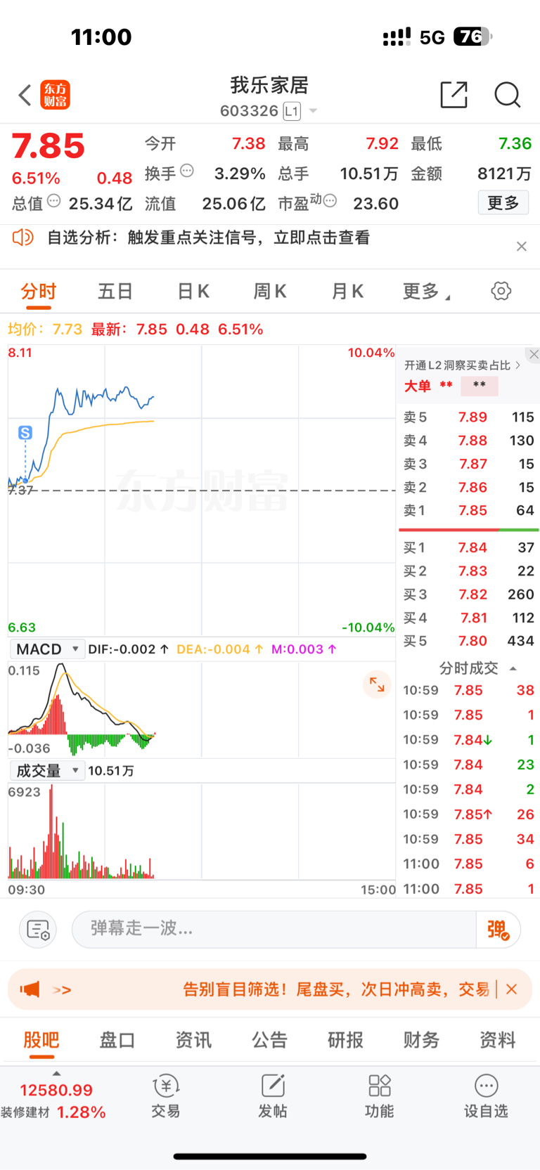 $我乐家居(SH603326)$ 原来憨憨就是我