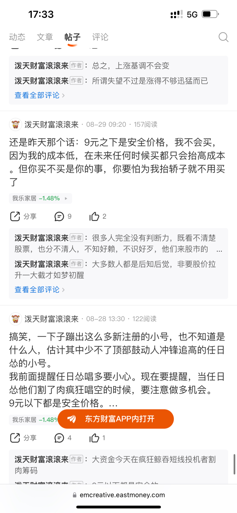 温馨提示: 1.根据《证券法》规定,禁止编造、传播虚假信息或者误导性信息,扰乱证券市场;2.用户在本社区发表的所有资料、言论等仅代表个人观点,与本网站立场无关,不对您构成任何投资建议。用户应基于自己的独立判断,自行决定证券投资并承担相应风险。《东方财富社区管理规定》