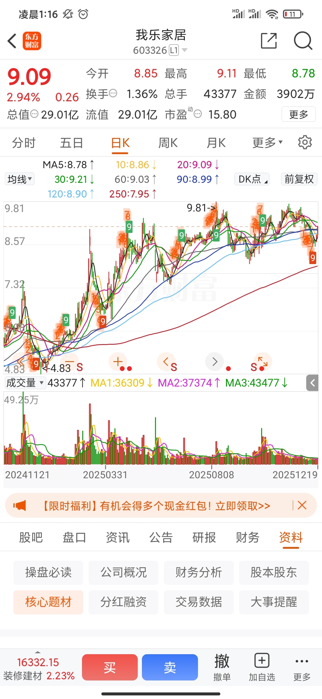 $我乐家居(SH603326)$
