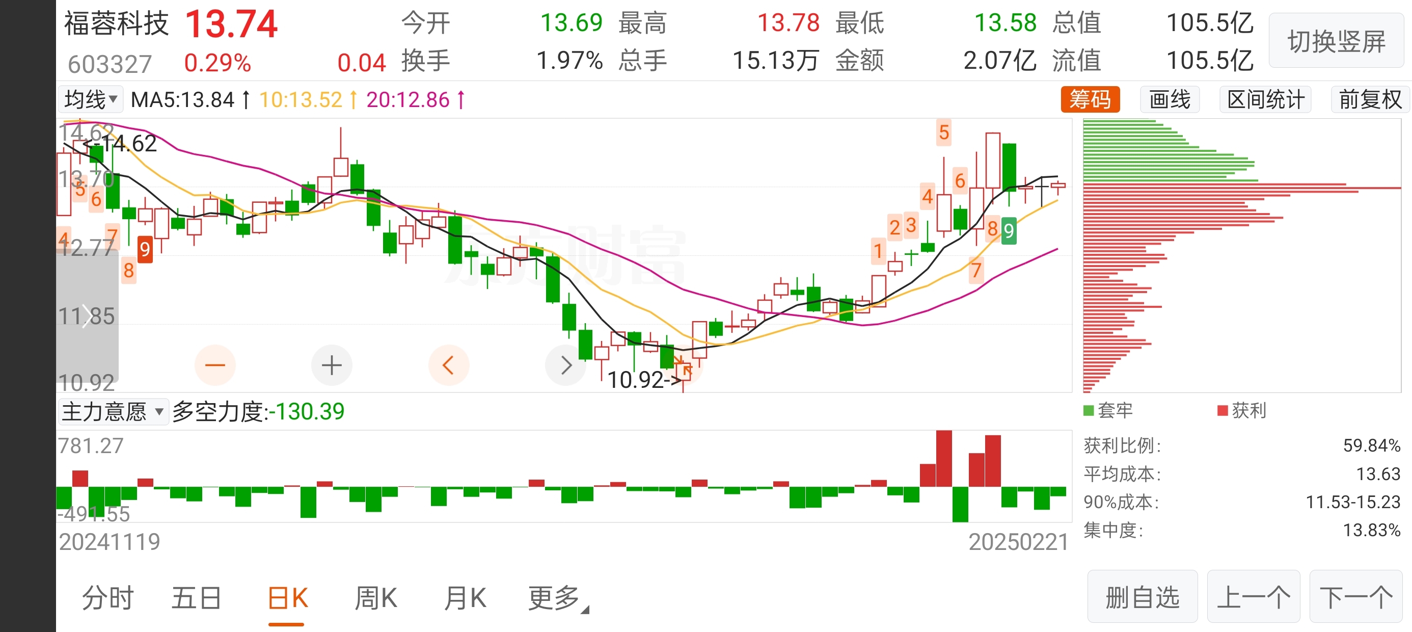 $福蓉科技(SH603327)$ 上午13.66接的,收盘赚了八分钱#收盘点评# Never say too late because of old age.#复盘记录#