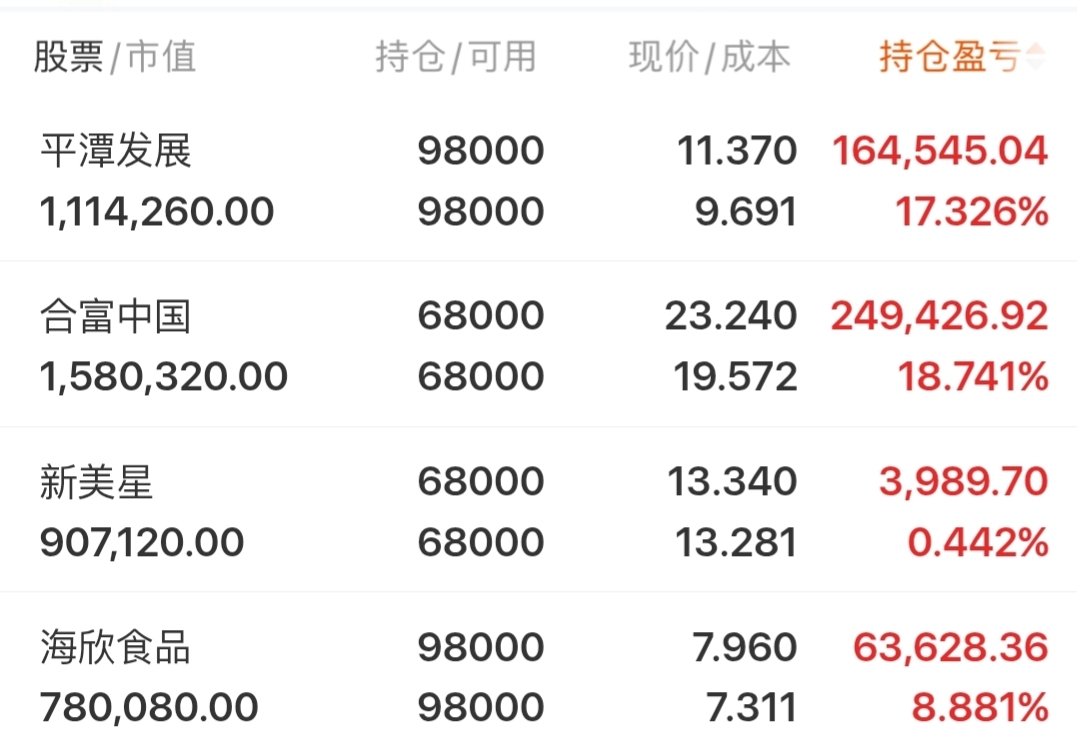 目前持仓:平潭发展这个位置没什么问题还可以继续格局