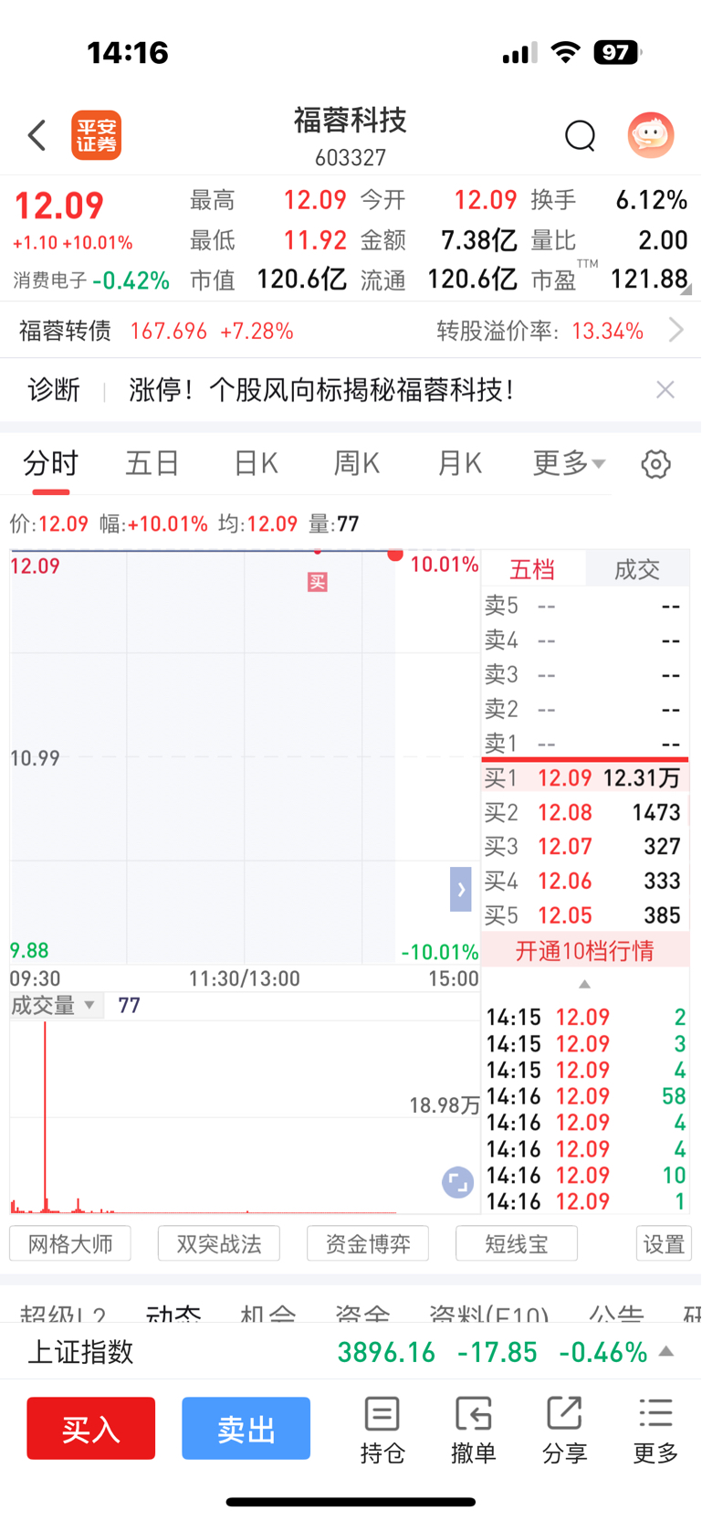 $福蓉科技(SH603327)$ 忘了撤单,下午排板排进去了,是好事还是坏事?