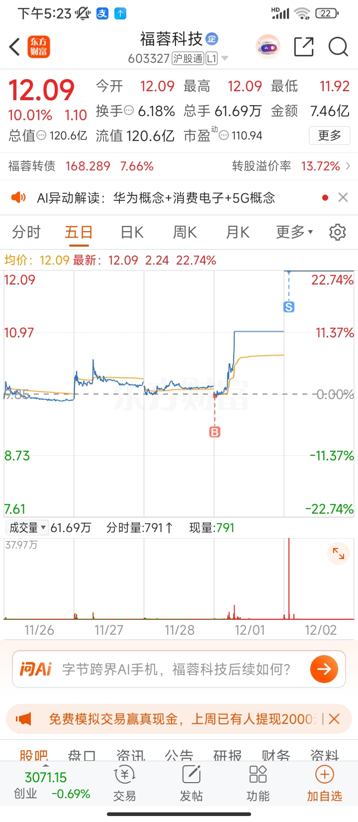 $福蓉科技(SH603327)$ 今天我又怂了!!!