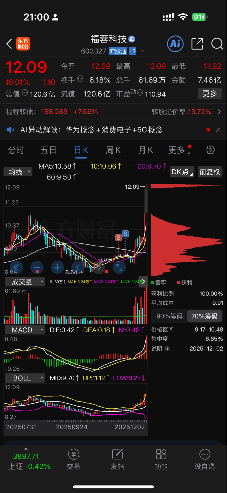 $福蓉科技(SH603327)$ 心想能涨涨得到多少嘛,套牢盘那么多