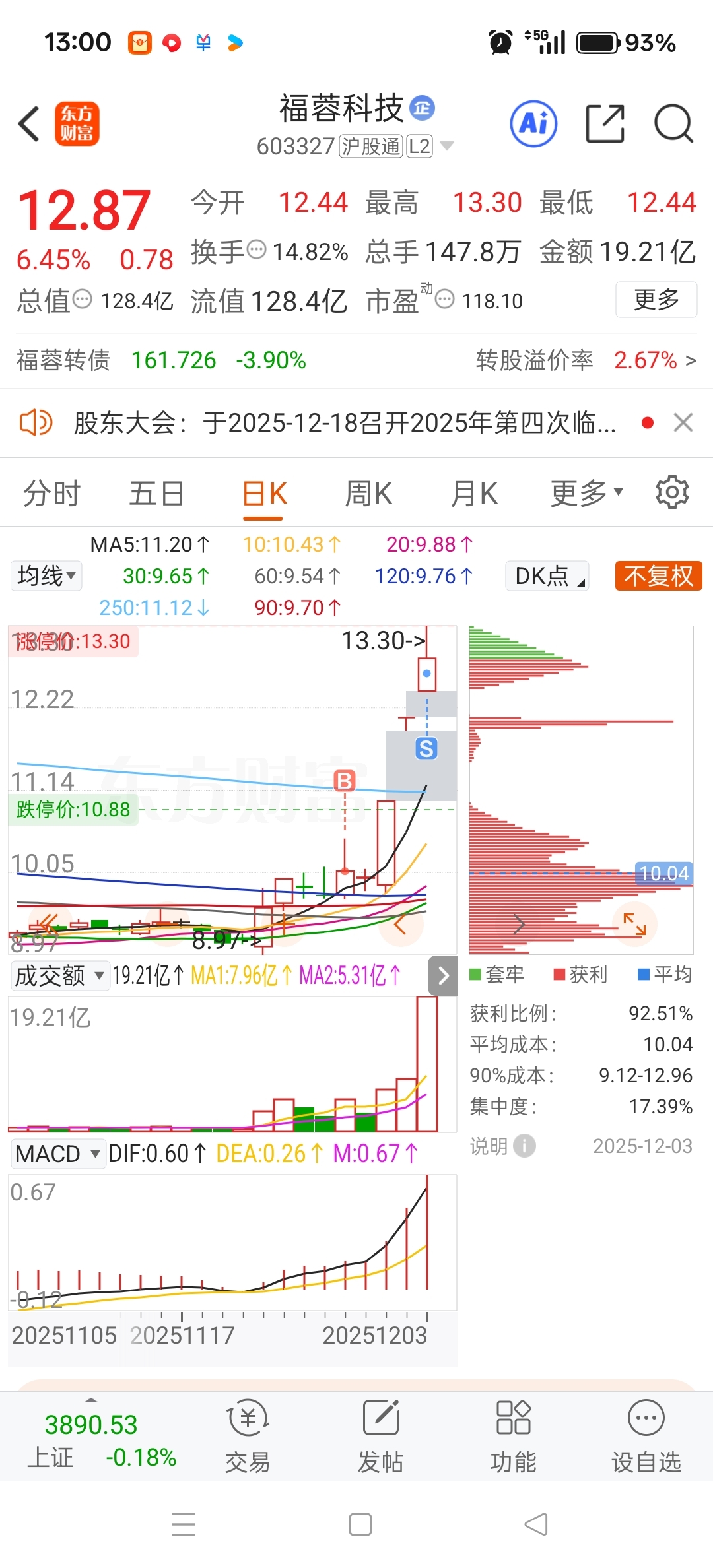 $福蓉科技(SH603327)$ 天量我先出了,祝车上的发财