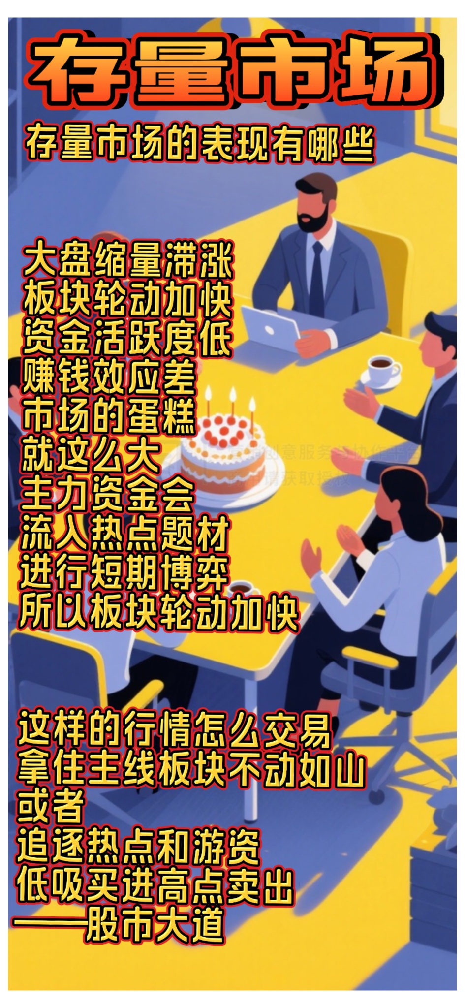 存量市场的表现有哪些大盘缩量滞涨板块轮动加快资金活跃度低赚钱效应差市场的蛋糕就这