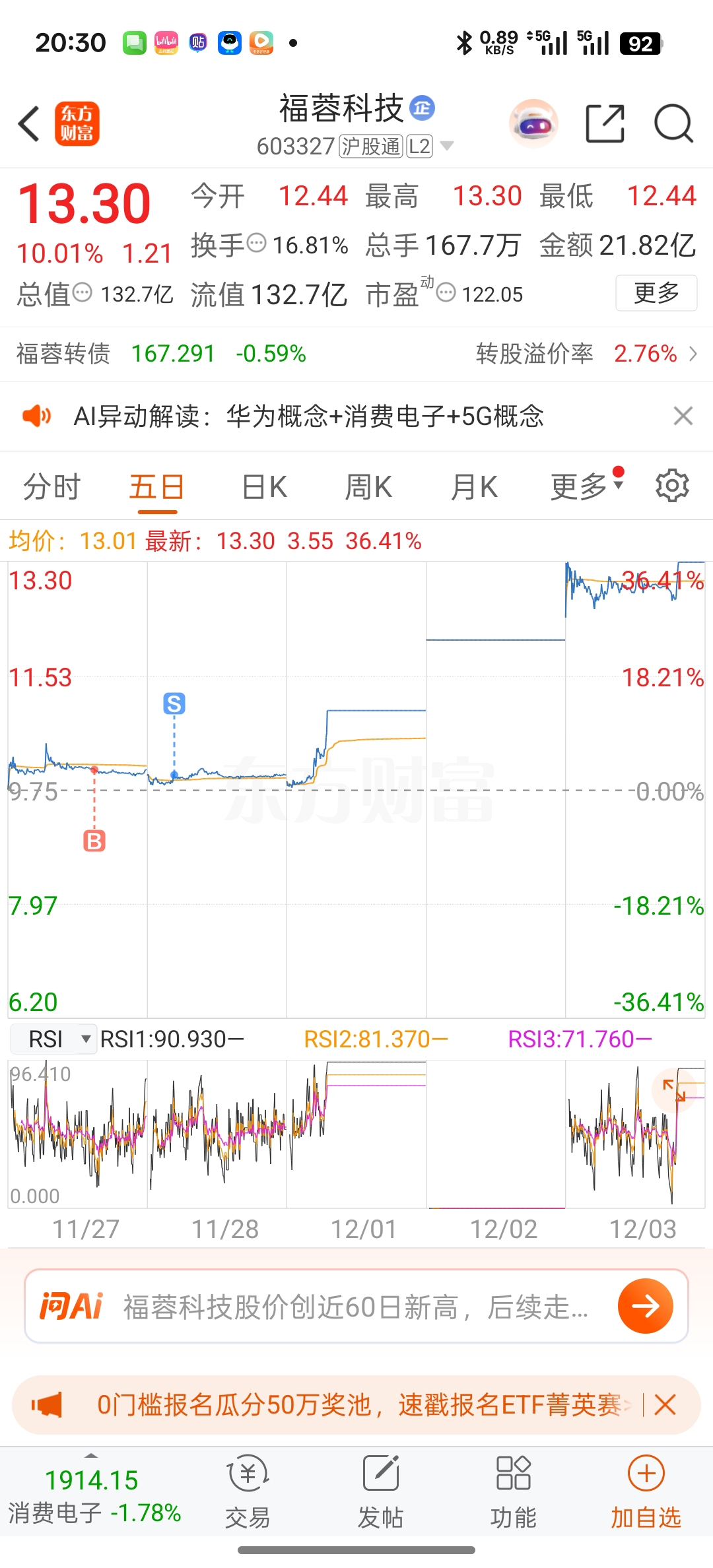 $福蓉科技(SH603327)$ 没办法,怪自己不够格局