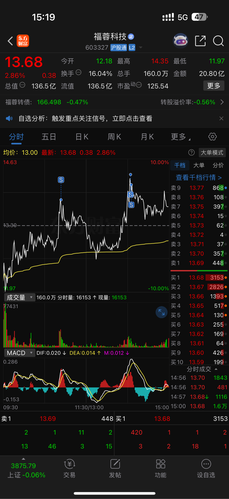 $福蓉科技(SH603327)$ 今天的卖点真的是很奈斯#炒股日记#