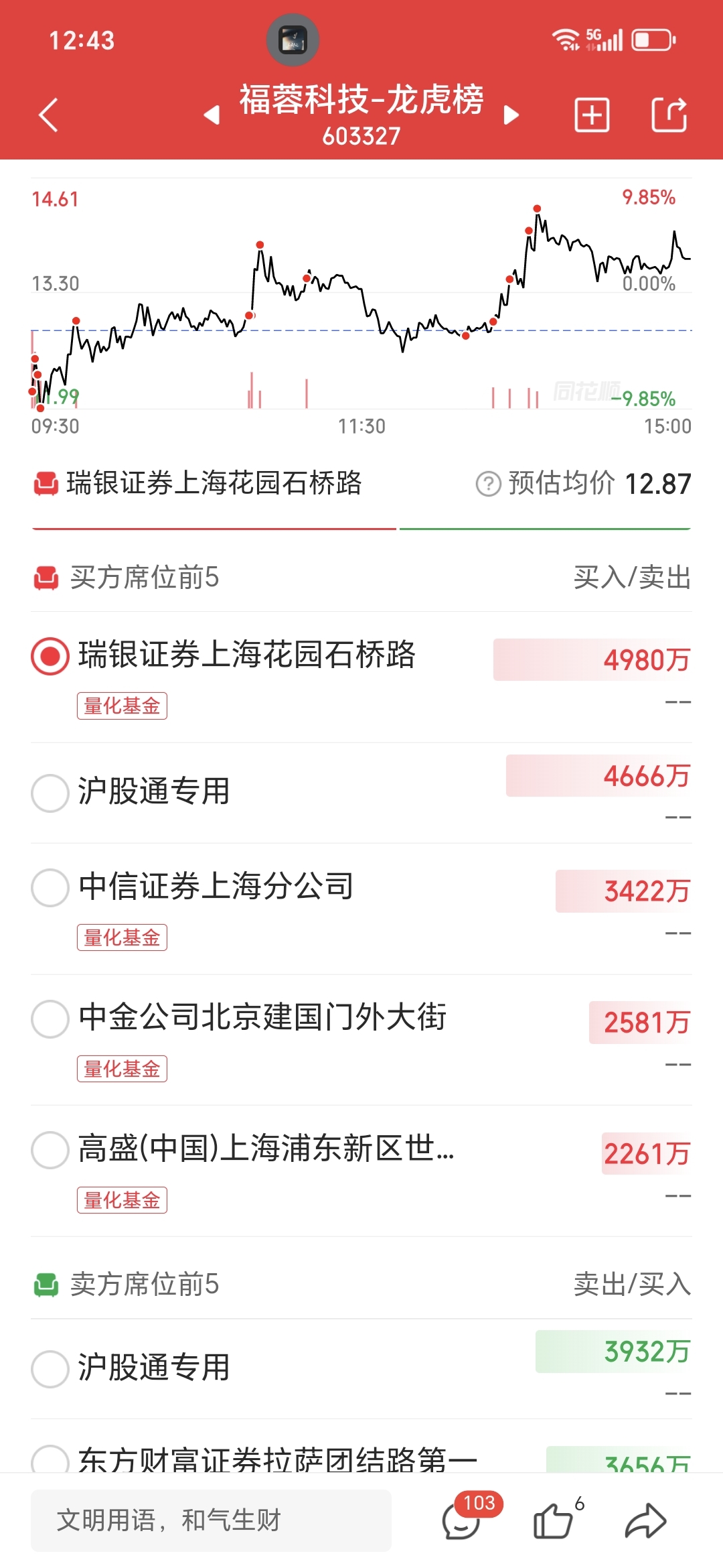 $福蓉科技(SH603327)$ 量化自己拉,没人接盘