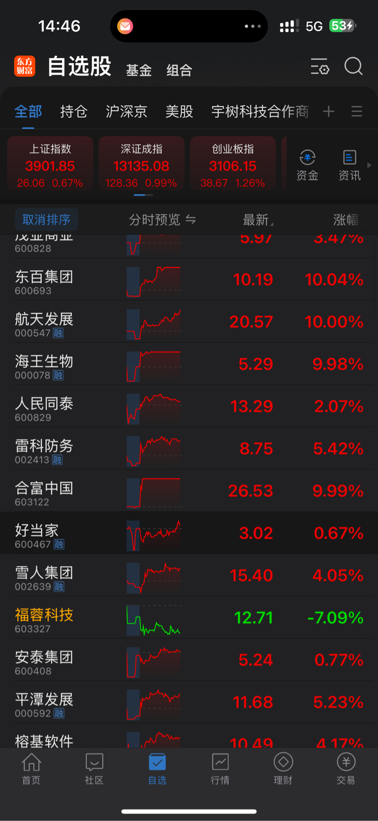 都涨疯了,唯一一只奇葩股,在中间深蹲绿油油,丢人现眼