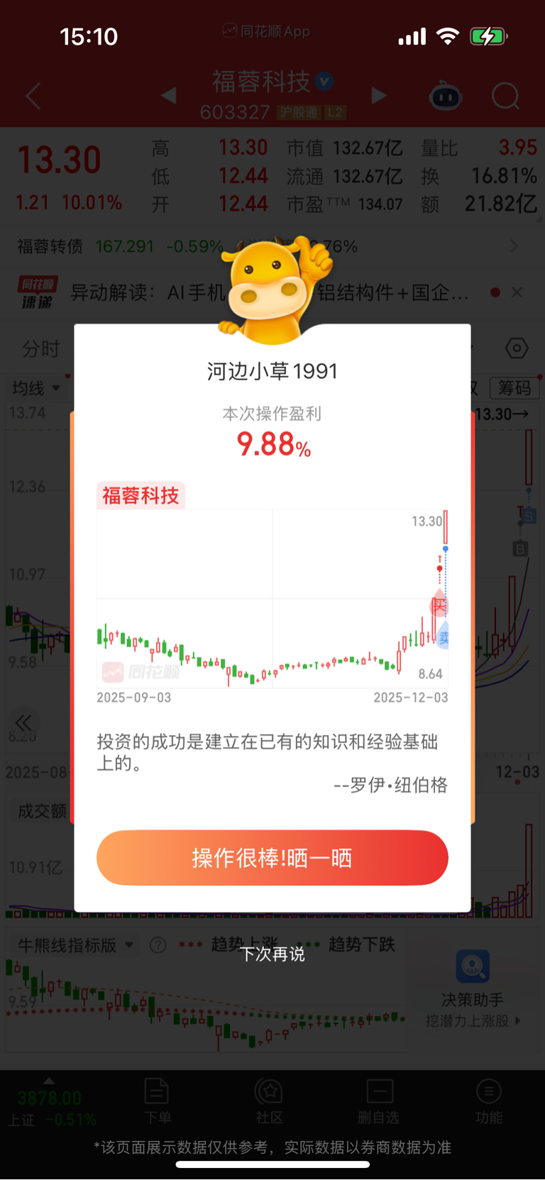 $福蓉科技(SH603327)$ 回头看,你真的不行了