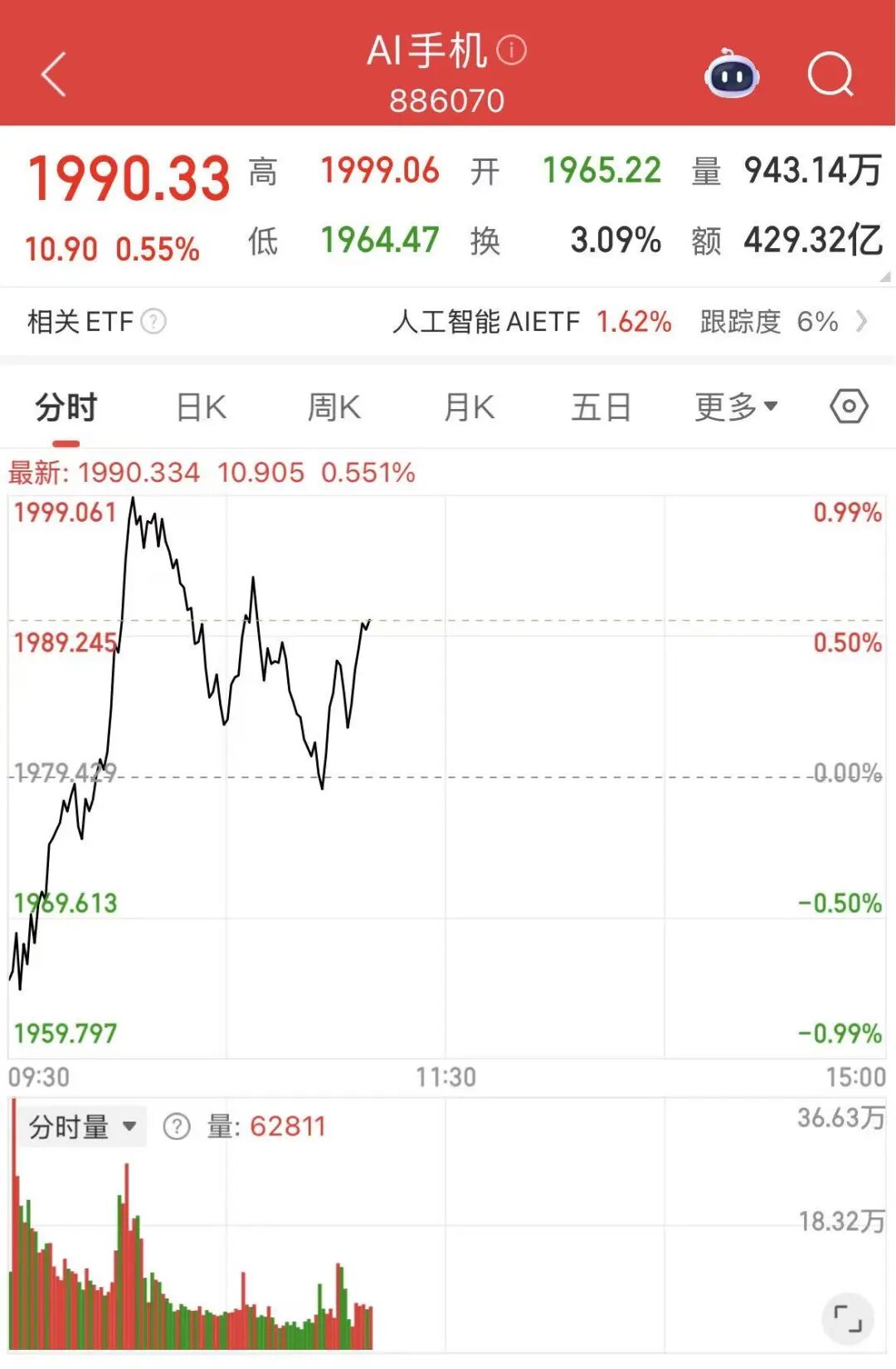 12月9日,AI手机概念早盘迅速拉升,福蓉科技触及涨停,思泉新材、鹏鼎控股等个股跟涨。同时,电广传媒、奥飞数据等智谱AI概念也陆续上扬。