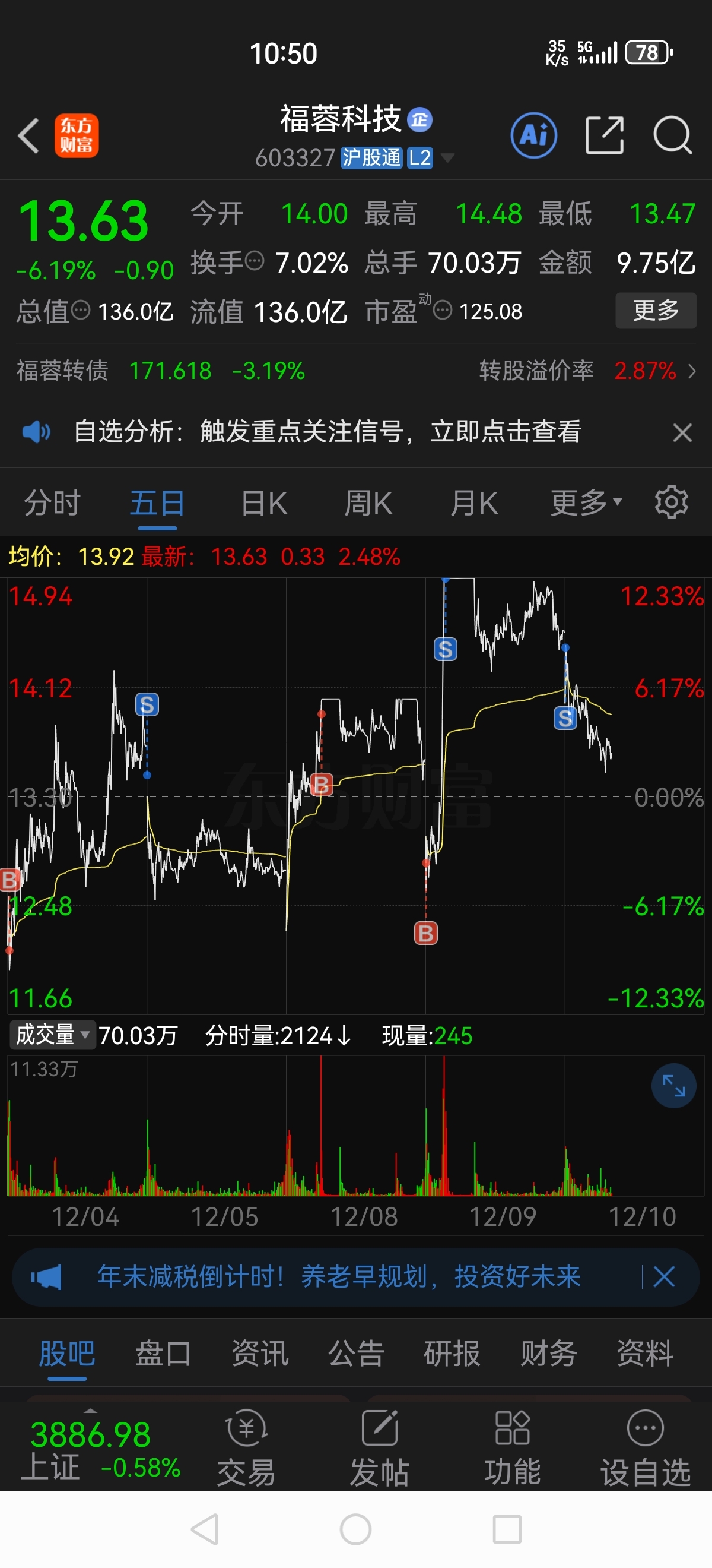 $福蓉科技(SH603327)$ 这买卖点太舒服了
