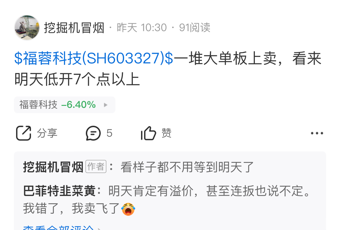 $福蓉科技(SH603327)$ 主力还是太好啦,早上冲高让我亏手续费走的