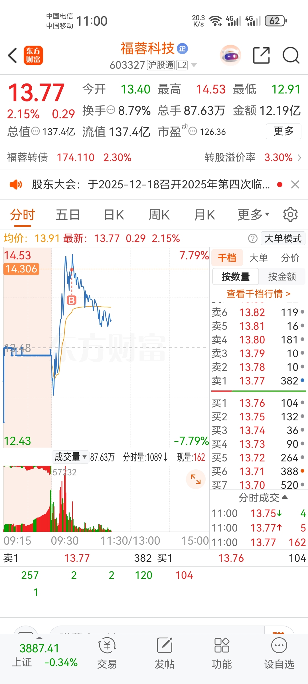 $福蓉科技(SH603327)$ 看了一早上,b在最高点