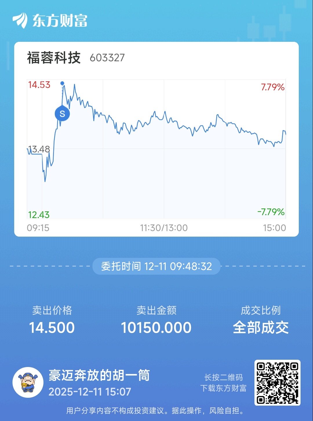 温馨提示: 1.根据《证券法》规定,禁止编造、传播虚假信息或者误导性信息,扰乱证券市场;2.用户在本社区发表的所有资料、言论等仅代表个人观点,与本网站立场无关,不对您构成任何投资建议。用户应基于自己的独立判断,自行决定证券投资并承担相应风险。《东方财富社区管理规定》