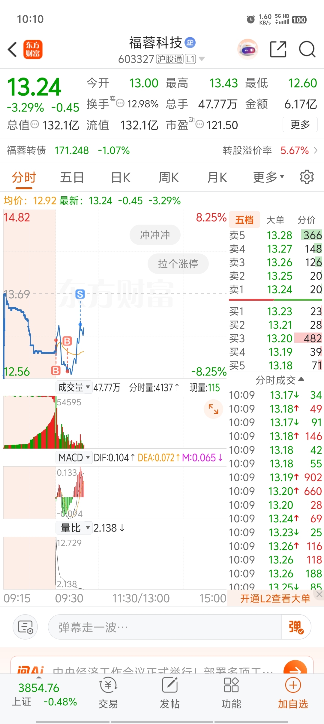 $福蓉科技(SH603327)$ 随便玩,我就是低吸