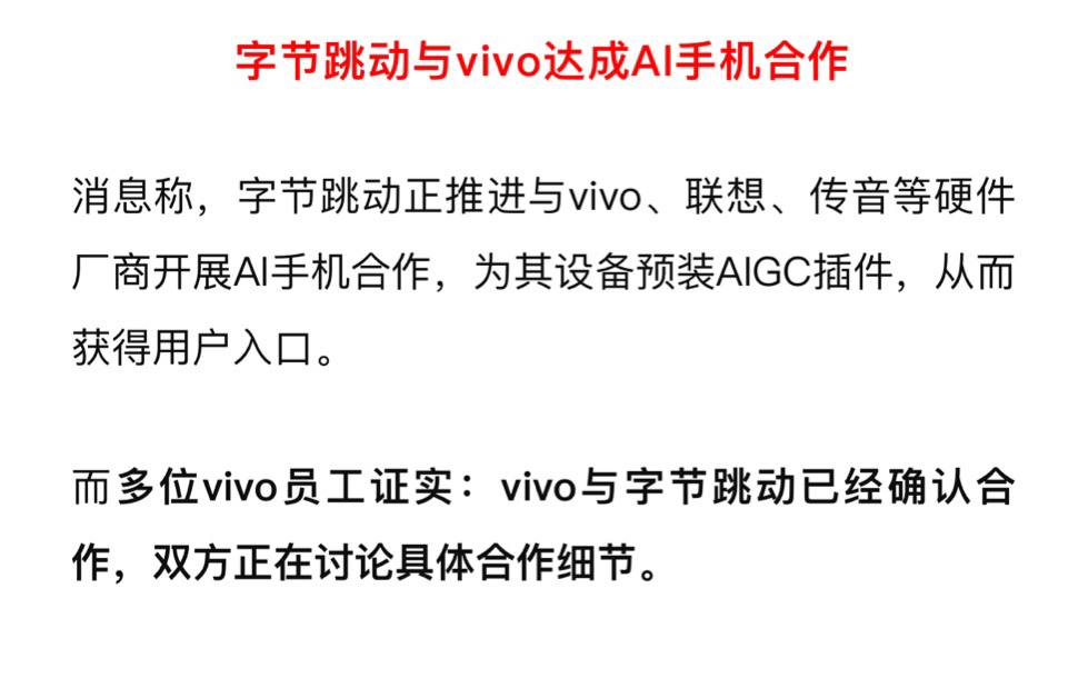 vivo跟字节合作的话,有些机构预测是5000w台,芙蓉异动公告里面明确说了跟v