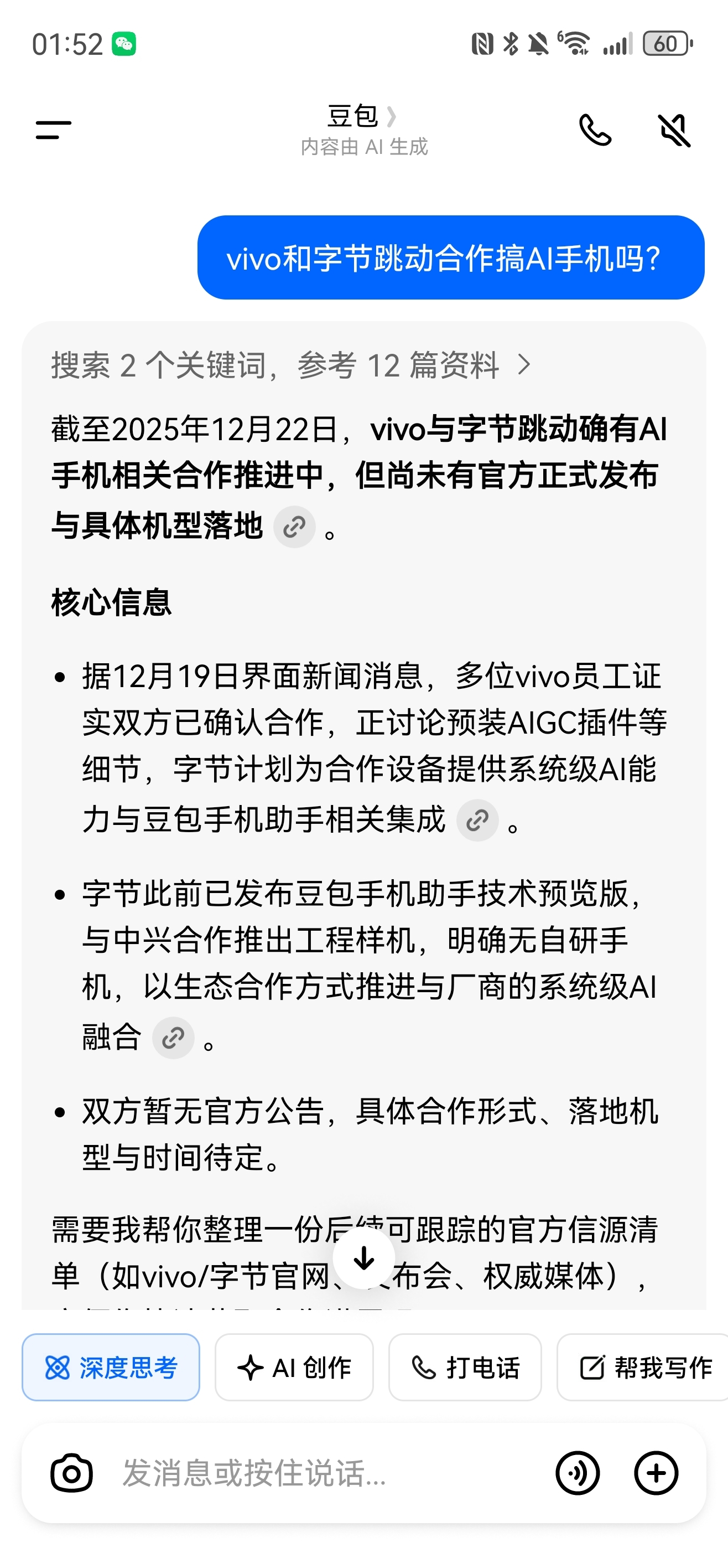 $福蓉科技(SH603327)$ 算是一个预期利好,十二月初字节和中兴推出的ai手机使用的铝制品主要来源于福蓉科技然后十二月一号到三号福蓉三连板,19号又爆出字节要和vivo搞ai手机虽然没有官方公告,但是很多新闻都报道了,vivo又和福蓉科技是良好合作关系,那么这次ai手机合作要是出公告vivo还是大概率会选福蓉科技来作为主要铝制品供应商
