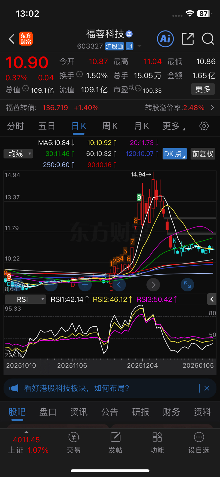 $福蓉科技(SH603327)$ 大大的缺口出等着!