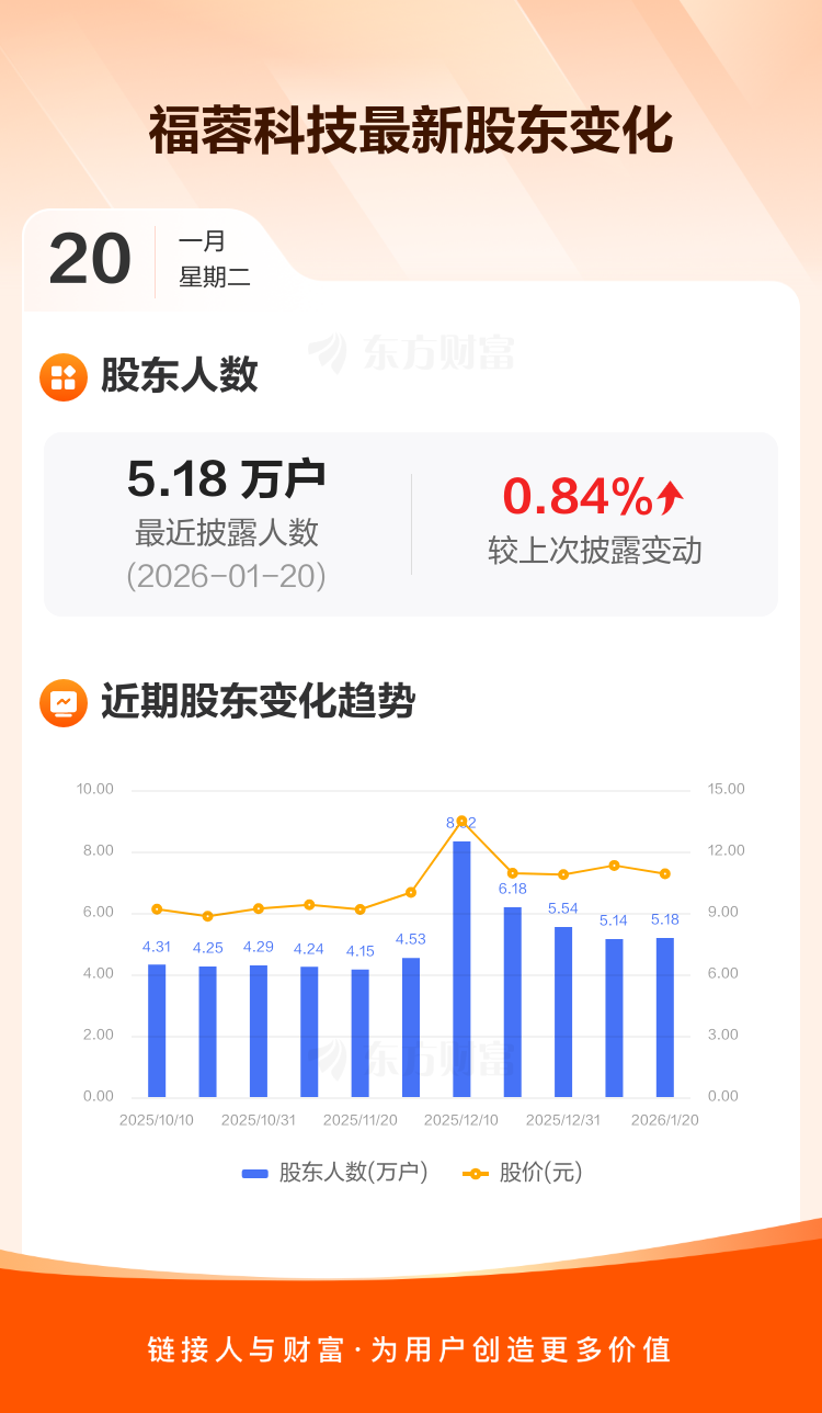 福蓉科技:截至1月20日最新股东户数5.18万户,较上期增加0.84%