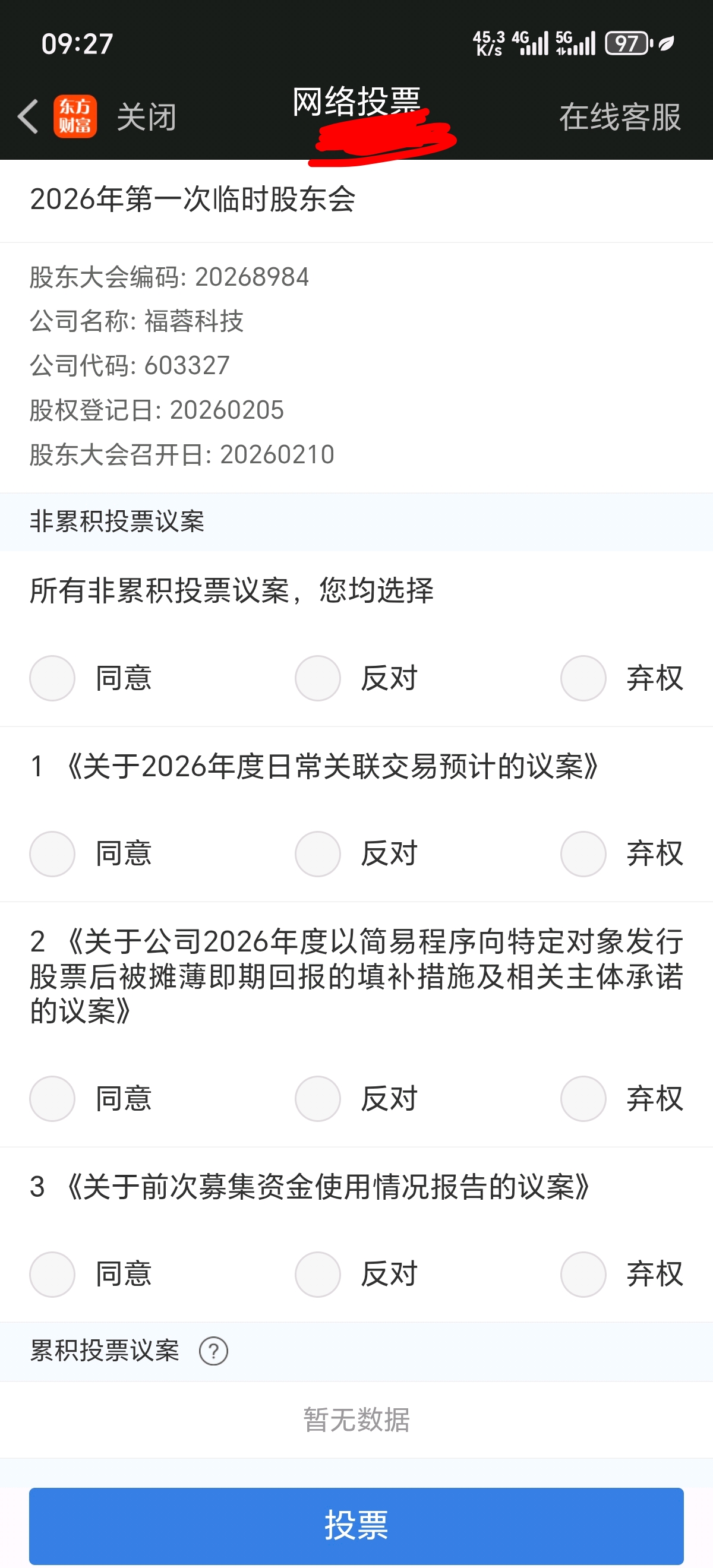$福蓉科技(SH603327)$ 兄弟们投票了