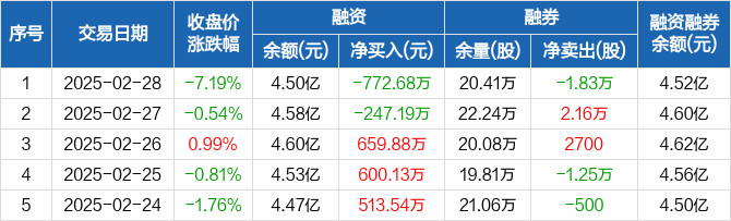 依顿电子:融资净偿还772.68万元,融资余额4.5亿元(02-28)