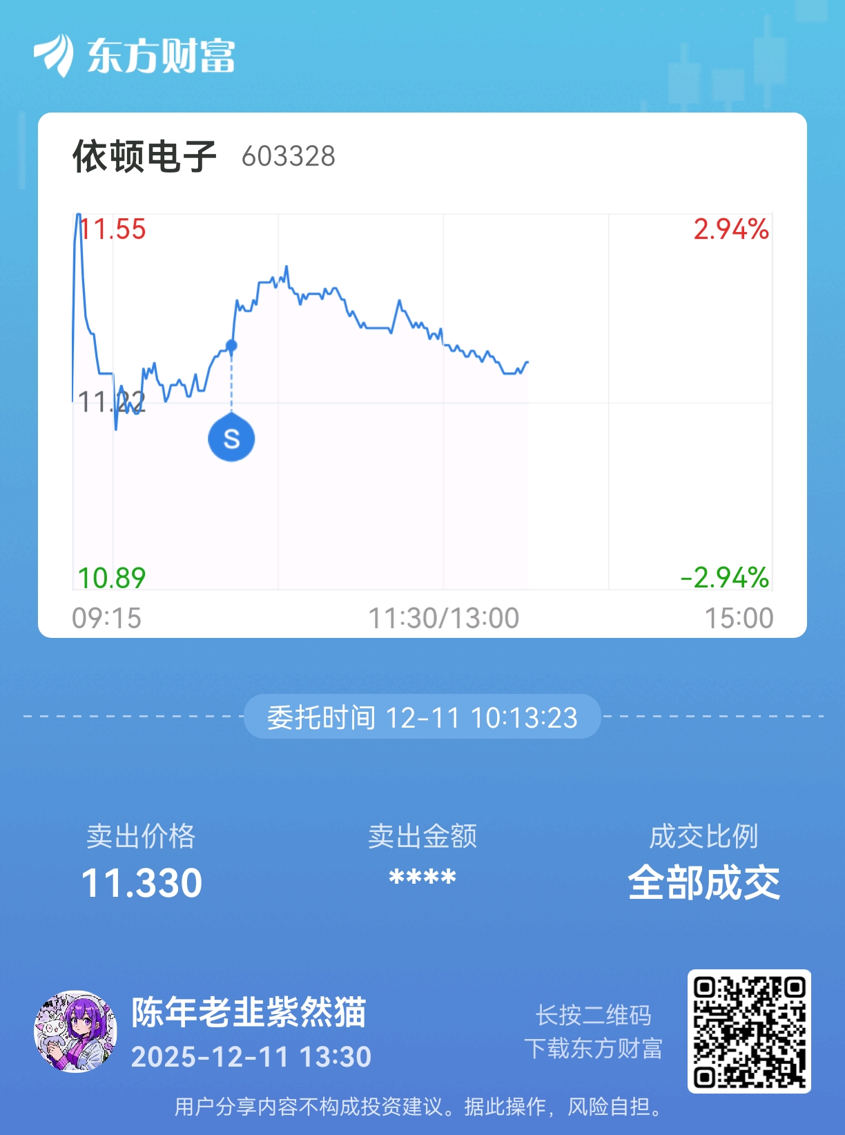 $依顿电子(SH603328)$ 小赚8个点,撤退!剩下的发财