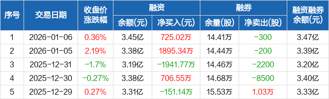 依顿电子:融资净买入725.02万元,融资余额3.45亿元(01-06)