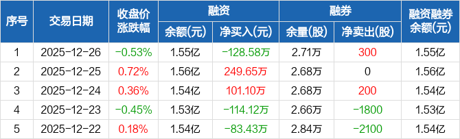 上海雅仕:融资净偿还128.58万元,融资余额1.55亿元(12-26)