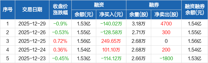 上海雅仕:融资净偿还140.02万元,融资余额1.53亿元(12-29)