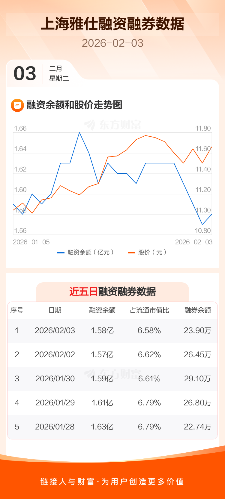 交易所最新数据显示,上海雅仕于2026年2月3日获融资买入590.96万元,融资偿还461.17万元,当日融资净买入129.79万元。目前,该股融资余额1.58亿,占流通市值比例为6.58%。